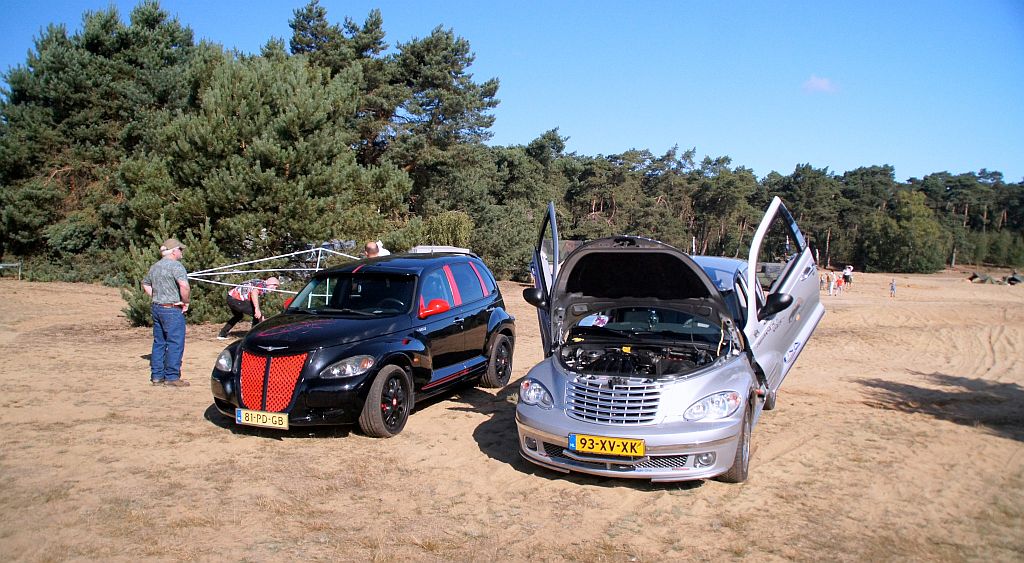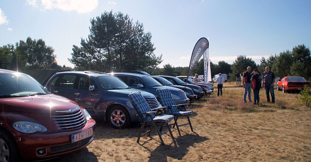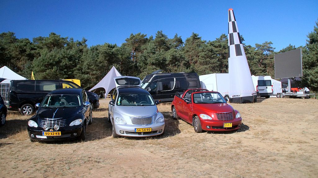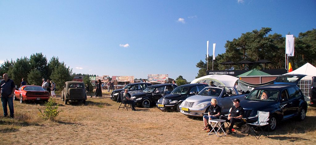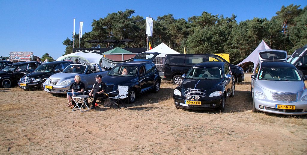 Samen met hulp van de Politie gingen we in colonne naar het evenementen terrein. Hier aangekomen hadden we een fijne plek vooraan waar we mooi konden staan. Alle Pt Cruisers op een rij, wat een mooie gezicht.