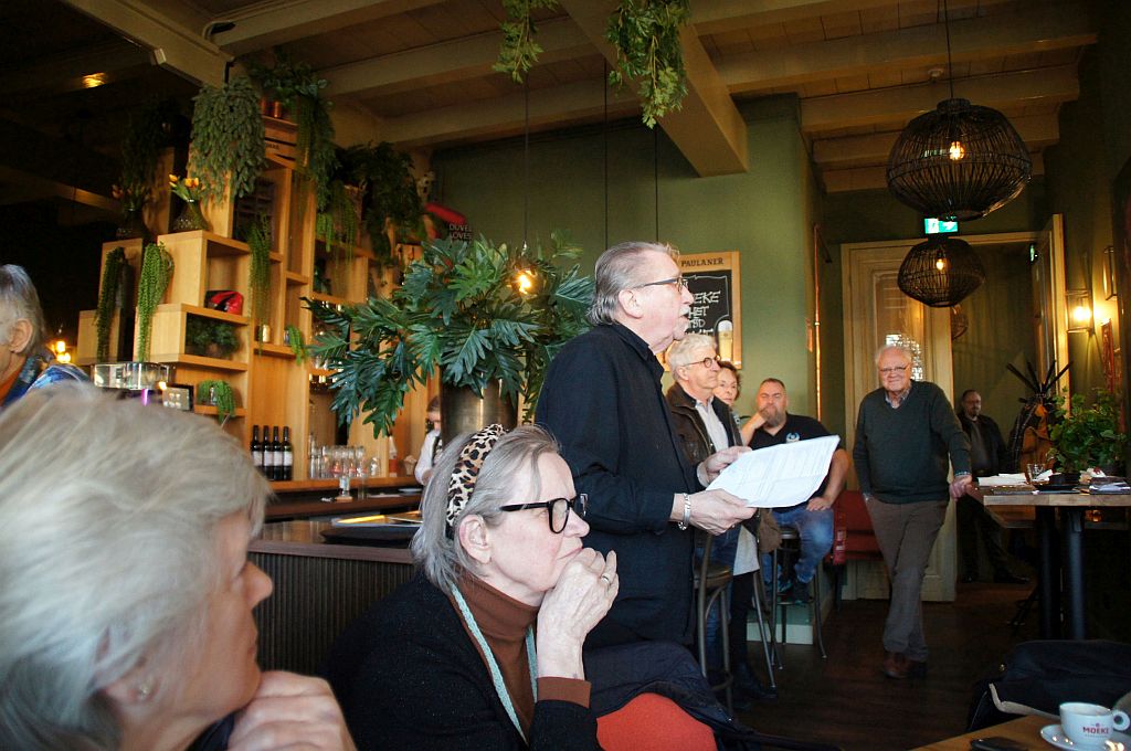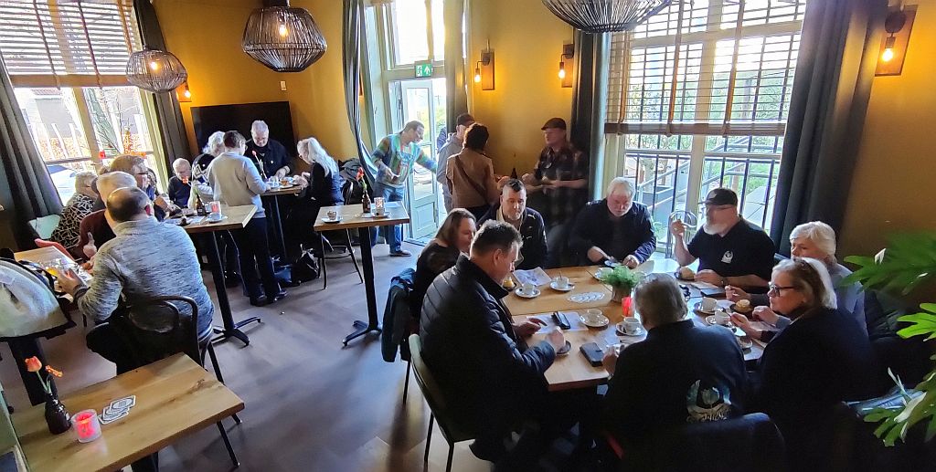 Na ontvangst met koffie en lekkere gebak, heeft John Gortemuller ons hartelijk welkom geheten. We hebben ook 1 minuut stilte gehouden voor onze overleden clublid en vriend Pieter den Exter.