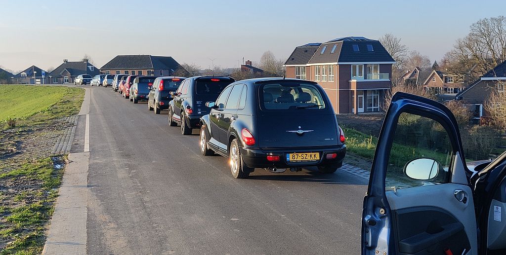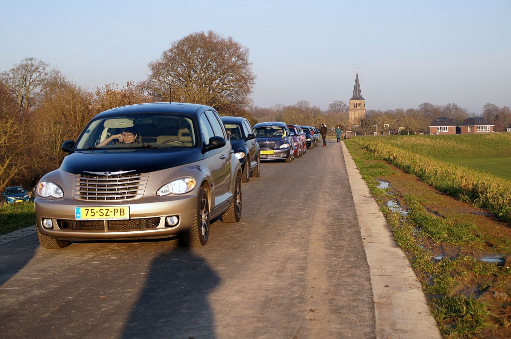 Jorgen Feunekes, heeft ons toe gesproken betreffende de toertocht welke hij uitgezet heeft. Jorgen hiervoor onze dank. We gingen onze mooie Pt Cruisers uit de parkeergarage halen en zijn aan de tocht begonnen. Het zonnetje stond laag wat wel eens het goed kijken beïnvloede. Maar we lieten ons dat niet dwars zitten. Hup dan gingen we dan "on the road again".